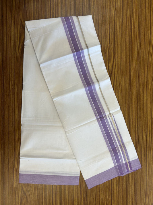 20% Discount ! Kaitharikada Balaramapuram 100% Pure Cotton Double Pure White Mundu/Dhoti - 100x80 - 1.5 inch Silver Kasav & Purple Shaded Stripes Chutty 3.90 mtr (8 muzham) - 54 KK5312 PMC
