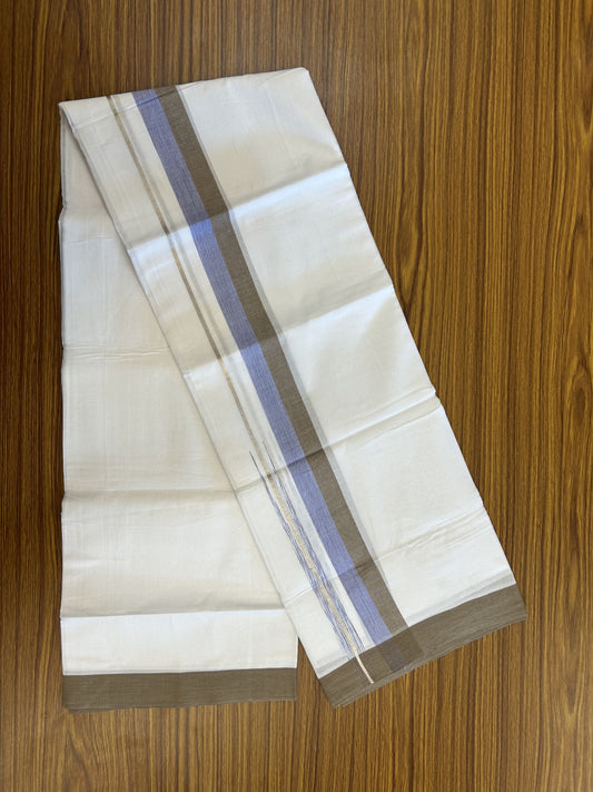 20% Discount ! Kaitharikada Balaramapuram 100% Pure Cotton Double Pure White Mundu/Dhoti - 100x80 - 1.5 inch Silver Kasav Greyish Brown & Blue Shaded Stripes Chutty 3.90 mtr (8 muzham) - 59 KK5312 PMC
