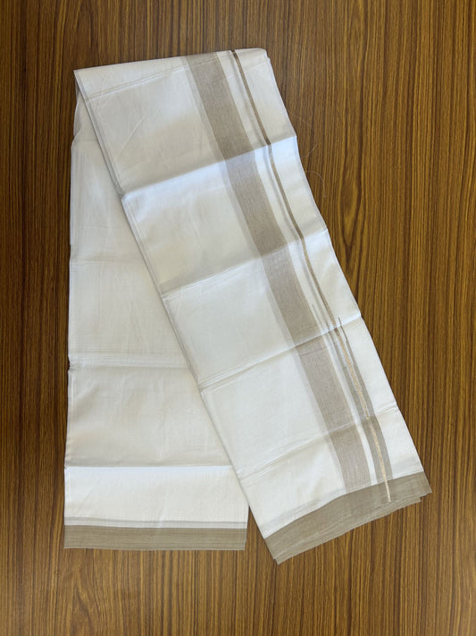20% Discount ! Kaitharikada Balaramapuram 100% Pure Cotton Double Pure White Mundu/Dhoti - 100x80 - 1.5 inch Silver Kasav & Sand Brown Shaded Stripes Chutty 3.90 mtr (8 muzham) - 52 KK5312 PMC