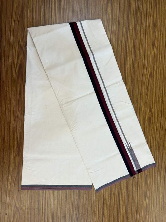 Dmk Veshti - 20% Discount !! KaithariKada Balaramapuram 100% Cotton Single Off White - (Unbleached) Mundu/Dhoti-100X100 - 1 inch Puliyilakkara Maroon & Black Chutty Kara (2 meter / 4 muzham) - 10 KK5335 ASH