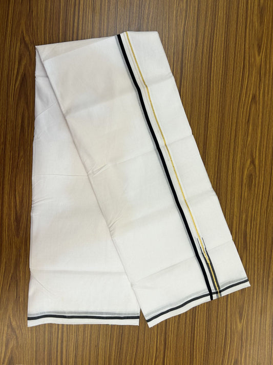 25% Disocunt!! KaithariKada Kerala Handloom Millpaav - 100% Pure Cotton Double - Mundu/Dhoti - 80x90 - .025 inch Puliyilakkara Gold Kasav & Black Chutty Kara - 3.96 mtr (8.49 muzham) - 7 KK5337 RAM