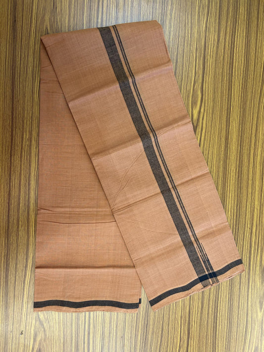 25% Disocunt!! KaithariKada Kerala Handloom Millpaav - 100% Pure Cotton Double - Mundu/Dhoti - 80x90 - 1.25 inch Puliyilakkara Black & Dark Peach Chutty Kara - 3.96 mtr (8.49 muzham) - 13 KK5337 RAM