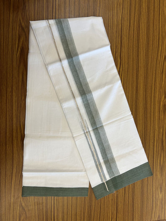 20% Discount ! Kaitharikada Balaramapuram 100% Pure Cotton Double Pure White Mundu/Dhoti - 100x80 - 1.5 inch Silver Kasav & Military Green Shaded Stripes Chutty 3.90 mtr (8 muzham) - 49 KK5312 PMC