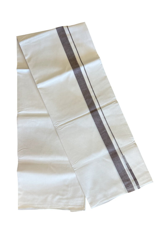 8% Discount ! Kaitharikada Balaramapuram 100% Cotton Pure White Double Mundu/Dothi- 0.5 inch Silver Kasav & Brown Striped Chutty Kara - 28KK5032GAN