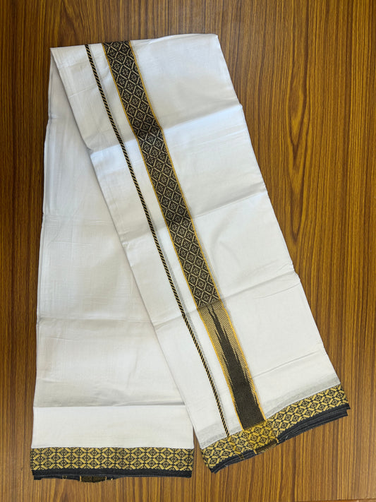 20% Discount ! KaithariKada Balaramapuram 100% Pure Cotton Double Pure White Mundu/Dhoti - 100x80 - 1.5 inch Puliyilakkara Gold Kasav & Black Jacquard Design Chutty kara 3.90 mtr (8 Muzham) - 1 KK5345 CJT