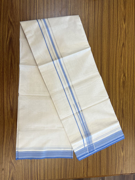 20% Discount ! KaithariKada Balaramapuram 100% Cotton Double Off White - (Unbleached) - Mundu / Dhoti- 100x80 - 1.25 inch Puliyilakkara Silver Kasav & Blue shaded striped chutty Kara - 4 mtr (8.5 Muzham) - 36 KK5340 VIN