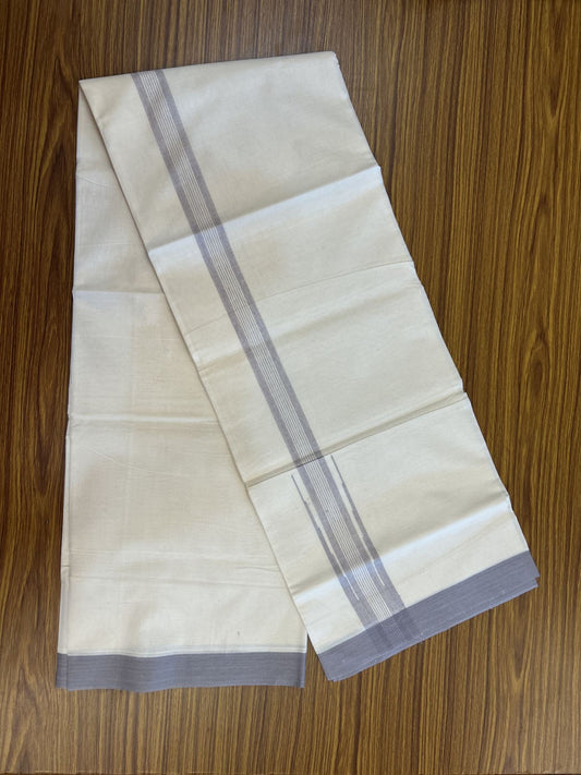 20% Discount ! KaithariKada Balaramapuram 100% Cotton Double Off White - (Unbleached) - Mundu / Dhoti- 100x80 - 1.75 inch Puliyilakkara Ash Purple shaded striped chutty Kara - 4 mtr (8.5 Muzham) - 30 KK5340 VIN