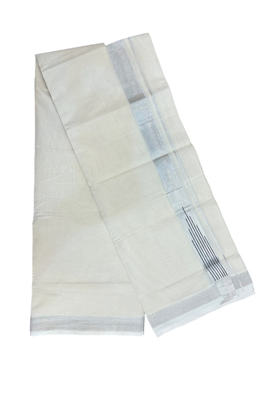 37% DISCOUNT! KaithariKada Balaramapuram 100% Cotton Double Off white (Unbleached) Mundu/Dhoti - 100x80 - 1.5 inch Silver Kasavu Black striped temple chutty kara - 130 KK5258 THI