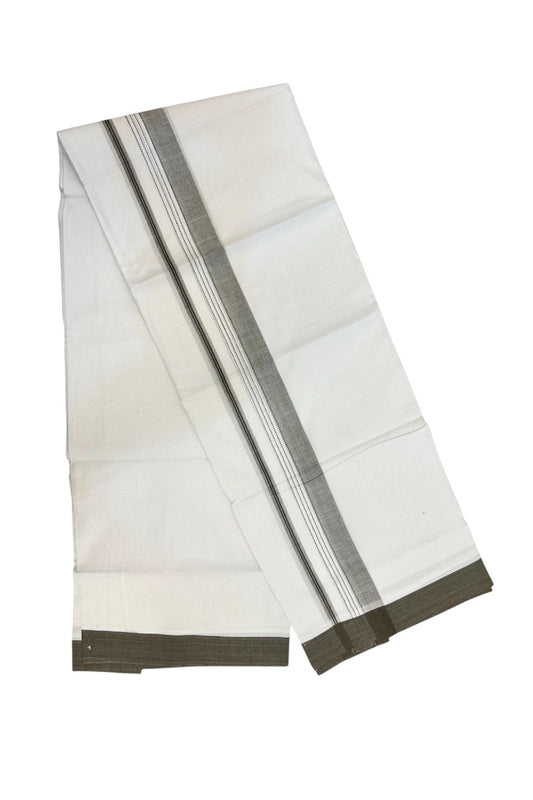 20% Discount ! Kaitharikada Balaramapuram 100% Cotton PURE WHITE Double Mundu/Dothi - 100x80 - 1.5 inch Olive Green Striped Kara - 19KK5183VIN