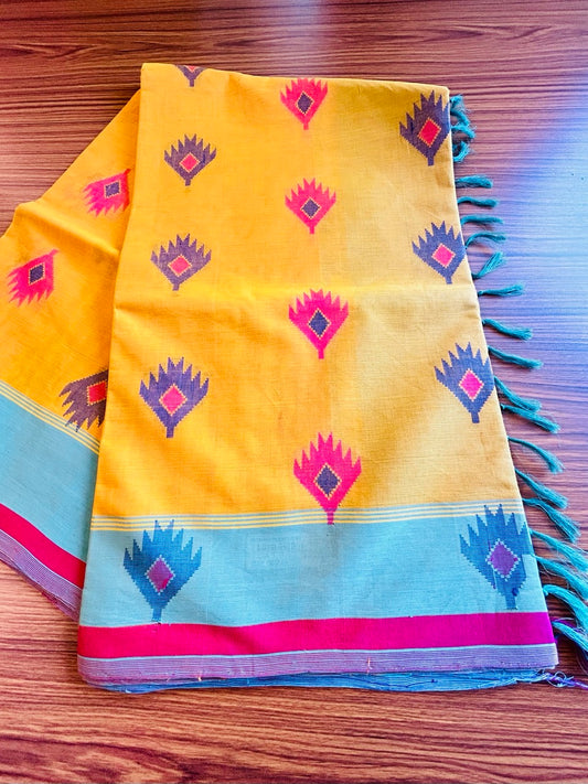 KaithariKada- HANDLOOM UNAKKUPAAV Balaramapuram Saree - 100% PURE Cotton - Yellow, Red & Green Design - 4KK1002KHA