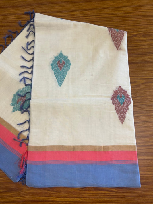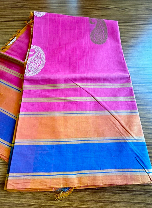 KaithariKada- HANDLOOM UNAKKUPAAV Balaramapuram Saree - 100% PURE Cotton - Orange, Blue & Pink Design - 6KK1003VH