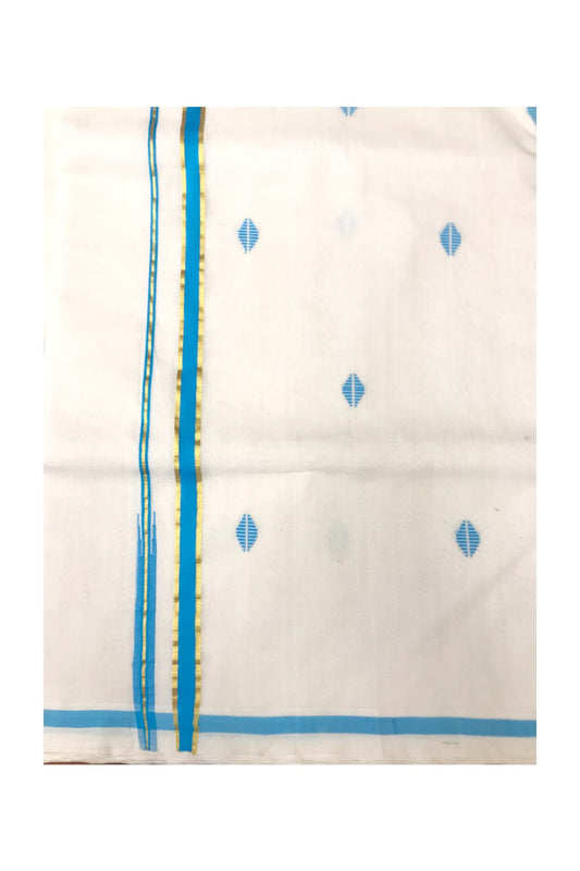 20% Discount KaithariKada HANDLOOM UNAKKUPAAV Balaramapuram - 100% PURE CottonKerala Saree for Women - 100% PURE Cotton Puliyilakara Chutty - Kerala Saree for Women with Sky Blue Colour Design - STH029