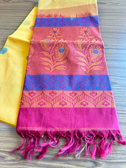 KaithariKada- Handloom Unakkupaav Balaramapuram Saree - 100% Pure Cotton - Yellow, Red & Green Design - 4KK1002KHA