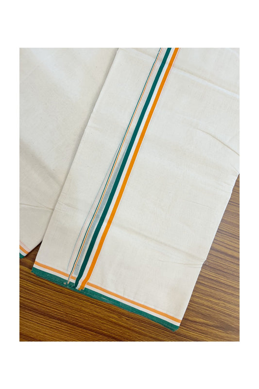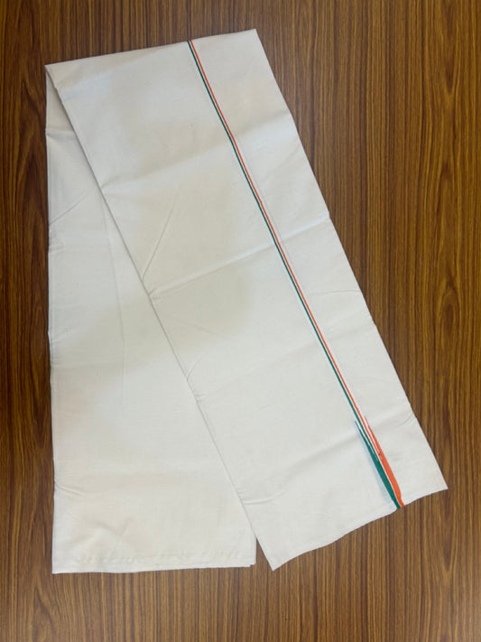 Congress Veshti - 20% Discount! KaithariKada 100% Cotton off white Double - (Unbleached) Mundu/Dhoti - 100X80 - 1 inch Orange White & Green Kara - 8 KK5300 ASH