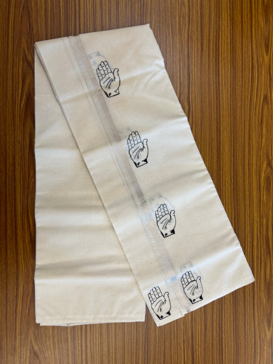 Congress Veshti - KaithariKada Balaramapuram 100% Cotton Double Off white - (Unbleached) Mundu/Dhoti-100x80 - 0.5 inch Hand Painted Silver Kasav & Kaipathi Design Kara 3.80 mtr (8 muzham) - 19 KK5244 ASH