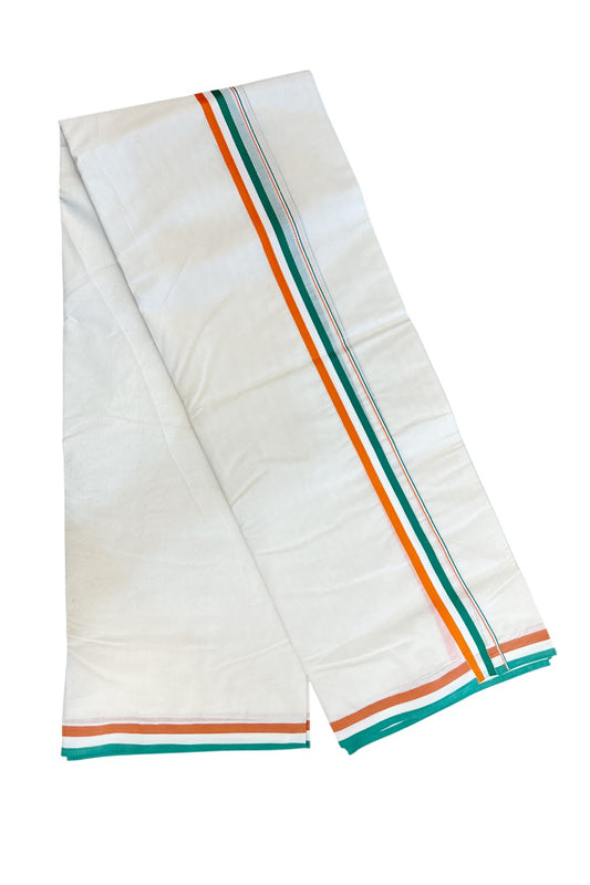 Congress Veshti - 20% Discount! KaithariKada 100% Cotton Pure white Double Mundu/Dhoti - 100X80 - 1 inch Orange White & Green Kara - 2 KK5297 ASH