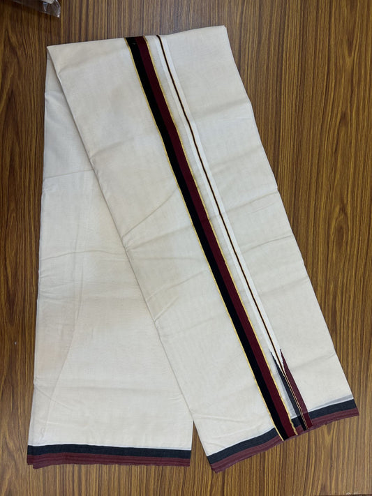 20% Discount ! KaithariKada Balaramapuram 100% Cotton Off White (Unbleached) Double Mundu/Dhoti - 100X80 - 1.75 inch Multi Colour kara - 2KK5193PMC