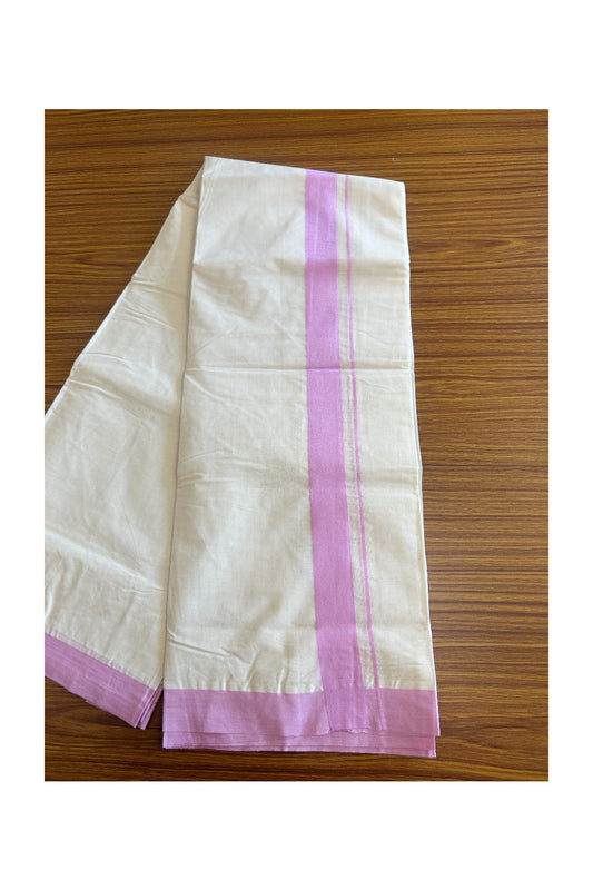 Signature Kaitharikada Exclusive Single Dhoti- 100% Cotton Balaramapuram Handloom Single Mundu/Dhoti - Off White - (Unbleached) 1.5cm Pink & Silver Kasav Kara (2 metre / 4 muzham)- 6KK5010KAI
