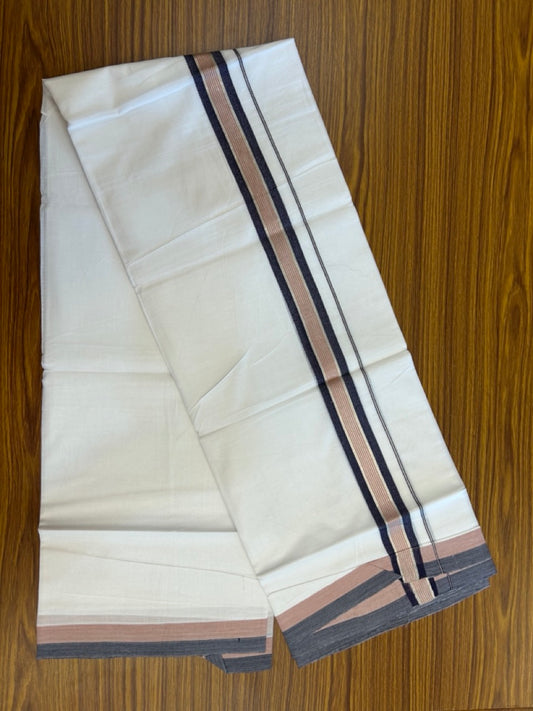 20% Discount ! KaithariKada Balaramapuram Double Pure White Mundu/Dhoti- 100x80 - 1.5 inch Silver Kasavu Navy Blue & Dusty Rose striped kara 3.90 Mtr (8 Muzham) - 9 KK5282 PMC