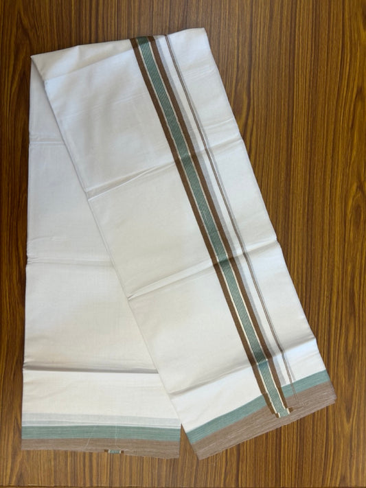 20% Discount ! KaithariKada Balaramapuram Double Pure White Mundu/Dhoti- 100x80 - 1.5 inch Silver Kasavu Brown & Pastel Teal striped kara 3.90 Mtr (8 Muzham) - 12 KK5282 PMC