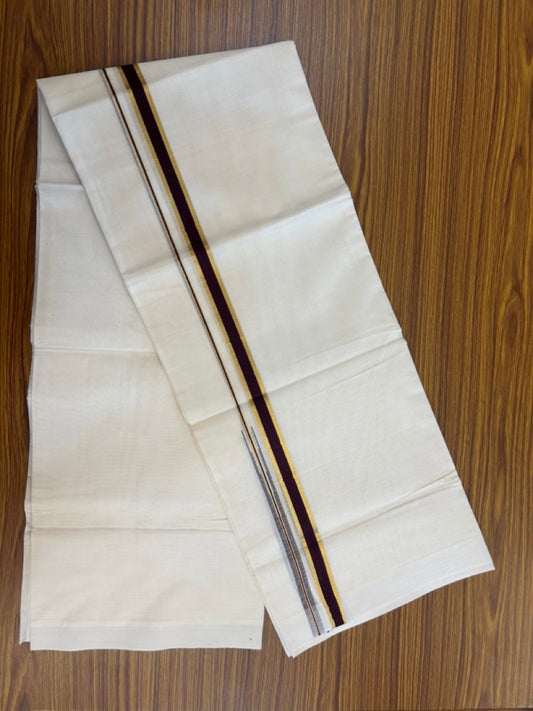 20% Discount ! Kaitharikada Balaramapuram 100% Pure Cotton Double Off white (Unbleached) Mundu/Dhoti - 100x80 - 0.75 inch Gold Kasav & Dark Maroon Shaded Chutty Kara - 21 KK5283 PMC