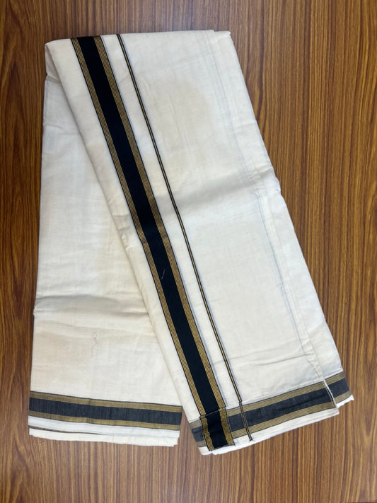 20% Discount ! KaithariKada Balaramapuram Mixed Cotton Double Off white - (Ubleached) Mundu/Dhoti VELCRO Mundu/Dhoti - (80s) - 1 inch Gold Kasavu & Black Striped kara 4mtr (8.5 muzham) - 6 KK5284 PMC