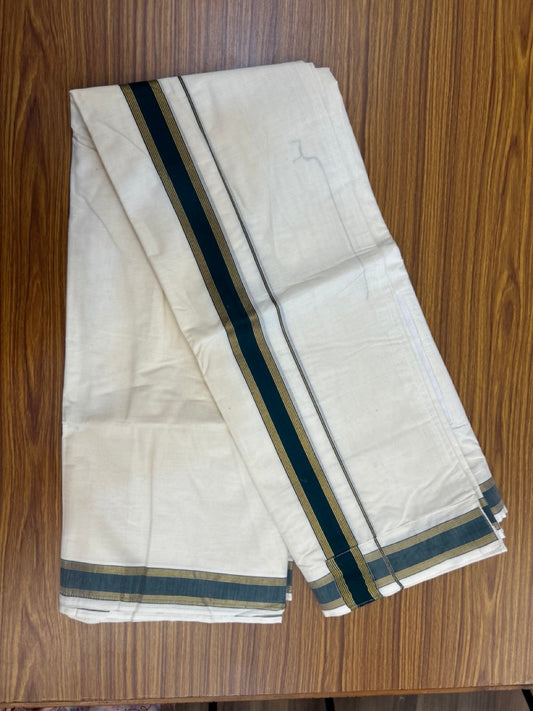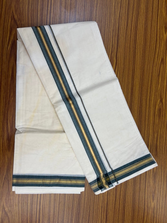 20% Discount ! KaithariKada Balaramapuram Mixed Cotton Double Off white - (Ubleached) Mundu/Dhoti VELCRO Mundu/Dhoti - (80s) - 1 inch Gold Kasavu & Dark Green Striped kara 4mtr (8.5 muzham) - 4 KK5284 PMC
