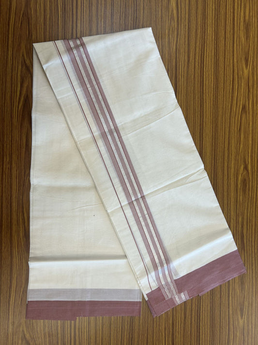 20% Discount !! KaithariKada Balaramapuram Double Off White (Unbleached) Mundu/Dhoti - 100x80 - 1.5 inch Dark Peach & Silver Striped kara 3.90 mtr (8 muzham) - 15 KK5313 PMC