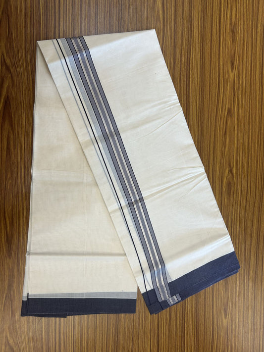 20% Discount !! KaithariKada Balaramapuram Double Off White (Unbleached) Mundu/Dhoti - 100x80 - 1.25 inch Navy Blue & Silver Striped kara 3.90 mtr (8 muzham) - 11 KK5313 PMC