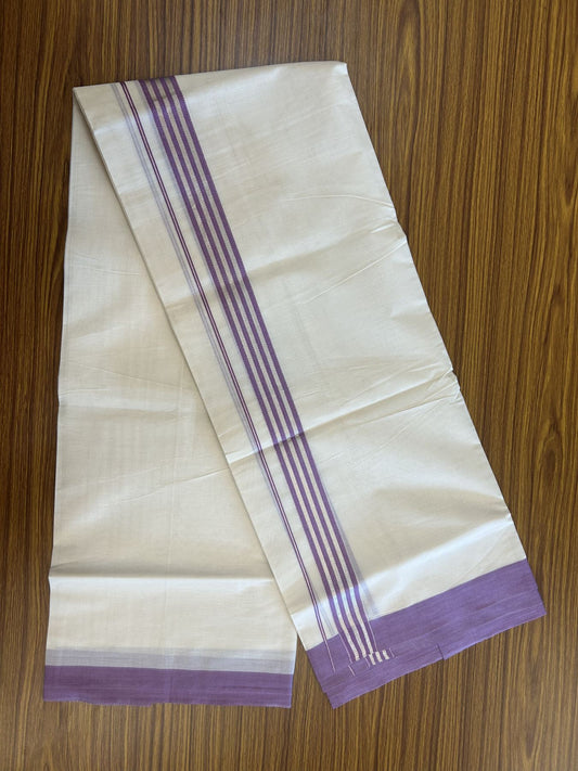20% Discount !! KaithariKada Balaramapuram Double Off White (Unbleached) Mundu/Dhoti - 100x80 - 1.25 inch Violet & Silver Striped kara 3.90 mtr (8 muzham) - 16 KK5313 PMC
