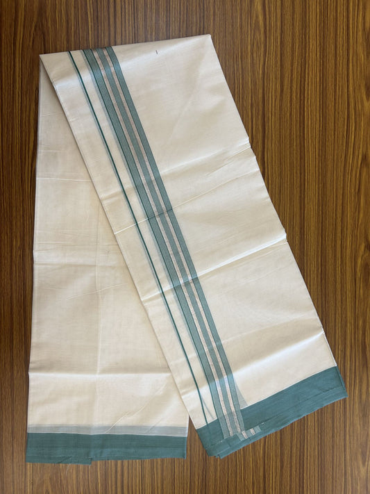 20% Discount ! Kaitharikada Balaramapuram 100% Pure Cotton Double Pure White Mundu/Dhoti - 100x80 - 1.5 inch Silver Kasav & Light Pine Green Shaded Stripes Chutty 3.90 mtr (8 muzham) - 45 KK5312 PMC