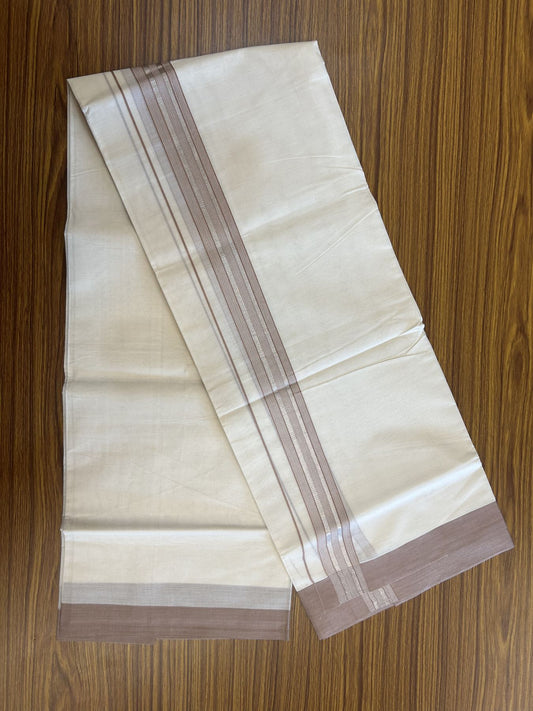20% Discount !! KaithariKada Balaramapuram Double Off White (Unbleached) Mundu/Dhoti - 100x80 - 1.25 inch Light Brown & Silver Striped kara 3.90 mtr (8 muzham) - 12 KK5313 PMC