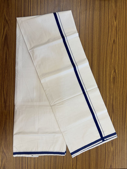 10% Discount ! KaithariKada Balaramapuram 100% Cotton Single Off white (Unbleached) Mundu/Dhoti - 40s - 1 cm Navy Blue Kara (2 meter / 4 muzham) - 2 KK5339 MC