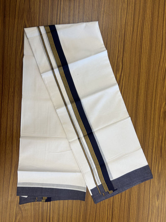 20% Discount! KaithariKada Balaramapuram 100% Cotton Double Pure white Mundu/Dhoti- 100x80 - 1.25 inch Gold Kasav & Navy Blue Stripes kara 3.75 mtr ( 8 muzham) - 38 KK5315 VAS