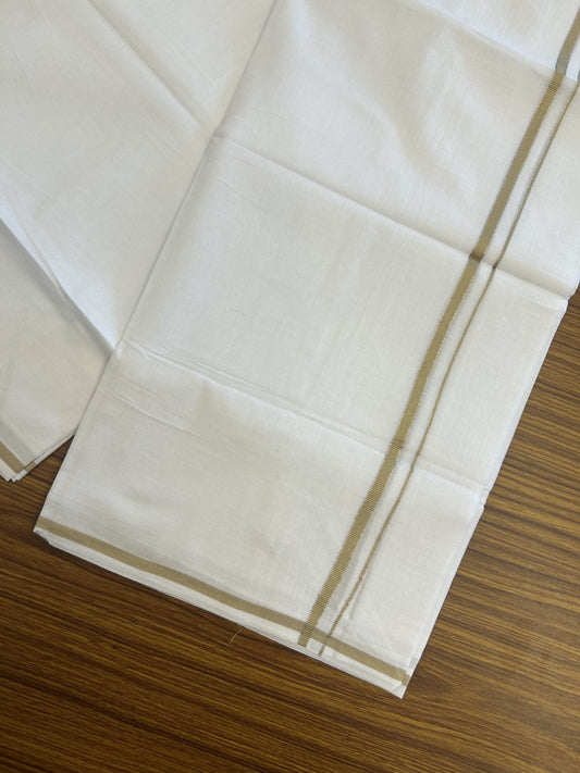 20% Discount! KaithariKada Balaramapuram 100% Cotton Double Pure white Mundu/Dhoti- 100x80 - 1.25 inch Gold Kasav & Black Stripes kara 3.75 mtr ( 8 muzham) - 37 KK5315 VAS