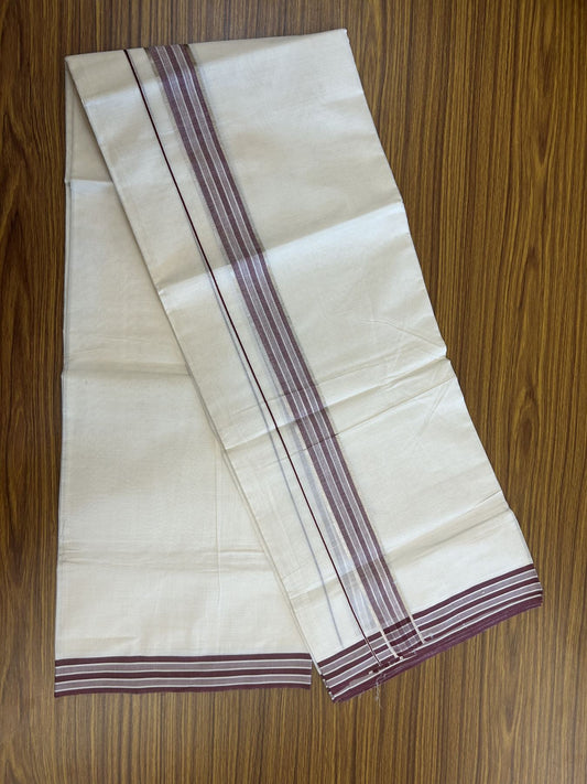20% Discount ! Kaitharikada Balaramapuram 100% Pure Cotton Double Off white (Unbleached) Mundu/Dhoti - 100x80 - 1.5 inch Silver Kasav & Maroon Shaded Stripes Kara 3.90 mtr (8 muzham) - 58 KK5313 PMC