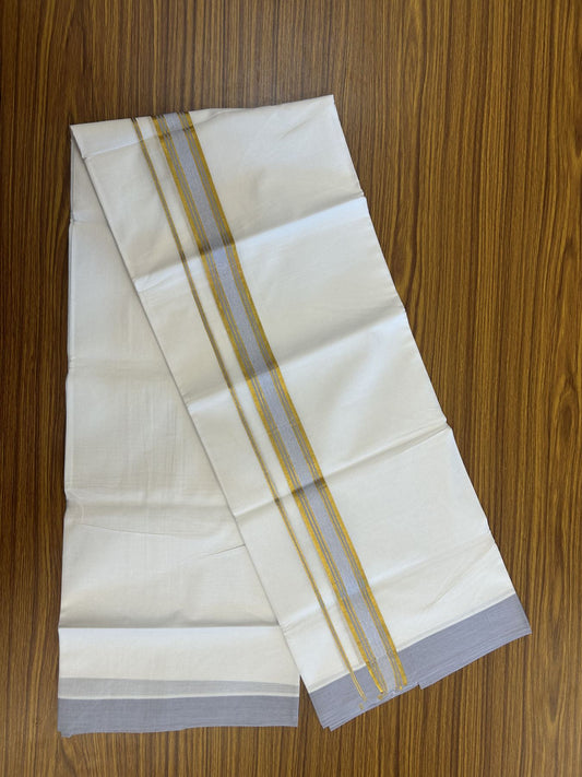 20% Discount! KaithariKada Balaramapuram 100% Cotton Double Pure white Mundu/Dhoti- 100x80 - 0.25 inch Silver Kasav Sage Grey kara - 3.75 mtr ( 8 muzham) - 15 KK5315 VAS