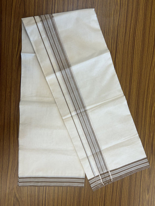 20% Discount ! Kaitharikada Balaramapuram 100% Pure Cotton Double Off white (Unbleached) Mundu/Dhoti - 100x80 - 1.75 inch Silver Kasav & Brown Shaded Stripes Kara 3.90 mtr (8 muzham) - 53 KK5313 PMC