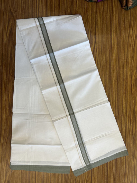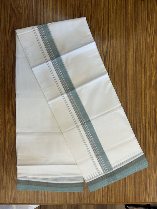 20% Discount! KaithariKada Balaramapuram 100% Cotton Double Pure white Mundu/Dhoti- 100X80 - 0.75 inch Silver Kasav & Sage Green kara - 4 mtr ( 8.5 muzham) - 22 KK5341 VIN