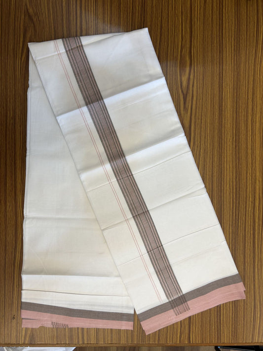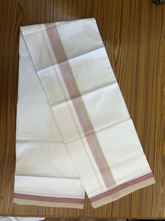 20% Discount! KaithariKada Balaramapuram 100% Cotton Double Pure white Mundu/Dhoti- 100X80 - 1.5 inch Brown & Dusty Rose kara - 4 mtr ( 8.5 muzham) - 7 KK5341 VIN