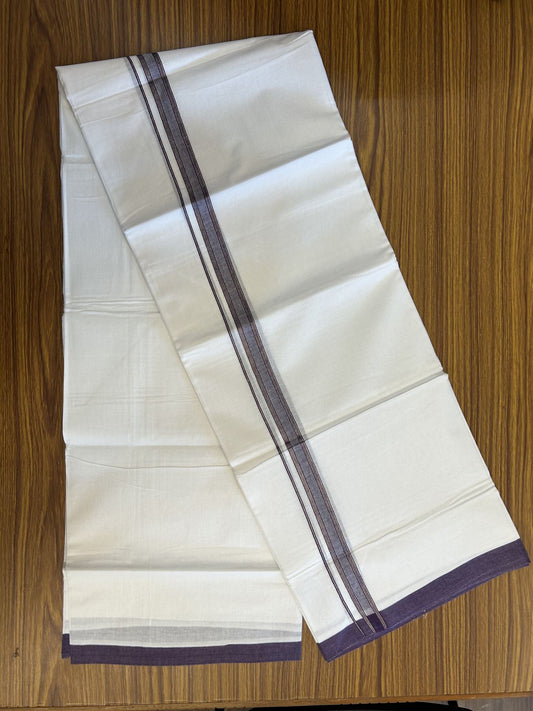20% Discount! KaithariKada Balaramapuram 100% Cotton Double Pure white Mundu/Dhoti- 100X80 - 0.75 inch Silver Kasav & Purple Striped kara - 4 mtr ( 8.5 muzham) - 16 KK5341 VIN