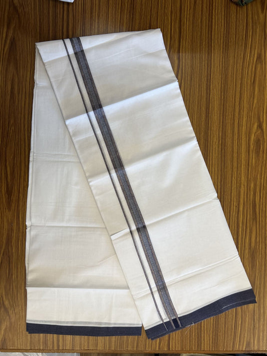 20% Discount !! KaithariKada Balaramapuram Double (Unbleached) Mundu/Dhoti - 80X90 - Black Colour Body - 1.5 inch Gold Kasav Striped Kara 4 mtr (8.5 muzham) - 2 KK5343 PMC