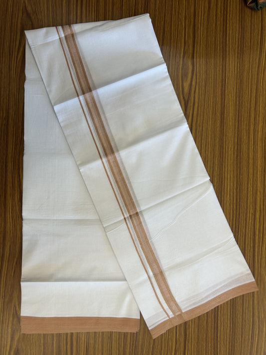 20% Discount! KaithariKada Balaramapuram 100% Cotton Double Pure white Mundu/Dhoti - 100X80 - 1.5 inch Stone brown shaded Striped kara - 4 mtr ( 8.5 muzham) - 40 KK5341 VIN