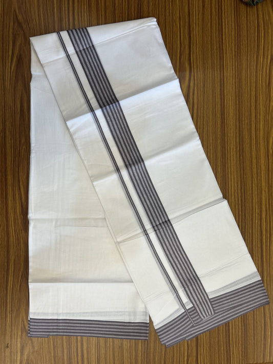 20% Discount! KaithariKada Balaramapuram 100% Cotton Double Pure white Mundu/Dhoti- 100X80 - 1.5 inch Ash & Brown kara - 4 mtr ( 8.5 muzham) - 11 KK5341 VIN