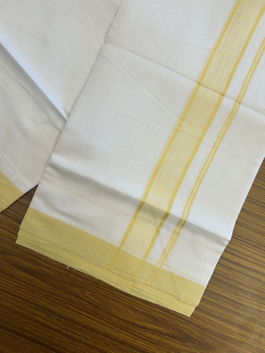 20% Discount! KaithariKada Balaramapuram 100% Cotton Double Pure white Mundu/Dhoti- 80s - 1.5 inch Yellow shaded kara - 3.80 mtr ( 8 muzham) - 65 KK5315 VAS