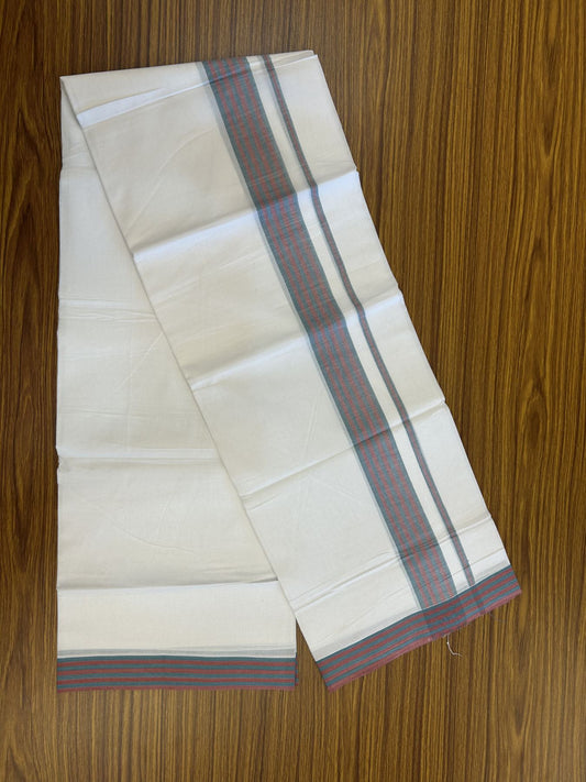 20% Discount ! Kaitharikada Balaramapuram 100% Cotton Pure White Double Mundu/Dothi - 100x80 - 1.5 inch Light Olive Green & Multi colour Stripes Design Kara 3.80 mtr (8 muzham) - 12 KK5319 THI