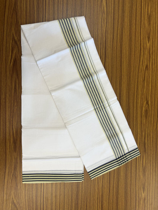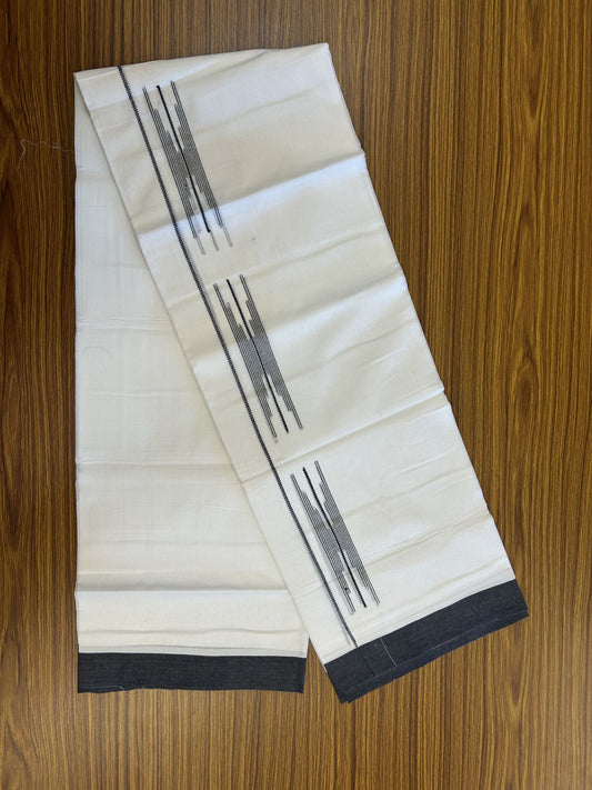 20% Discount ! Kaitharikada Balaramapuram 100% Cotton Pure White Double Mundu/Dothi - 100x80 - 1.5 inch Ash Black Stripes Design Kara 3.80 mtr (8 muzham) - 23 KK5319 THI