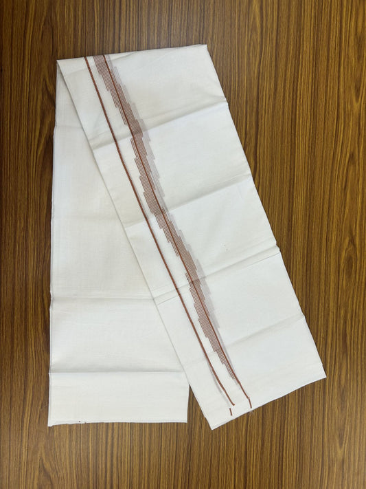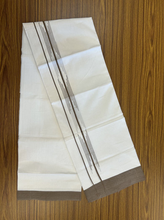 20% Discount ! Kaitharikada Balaramapuram 100% Cotton Pure White Double Mundu/Dothi - 100x80 - 1.5 inch Brown Stripes Design Kara 3.80 mtr (8 muzham) - 14 KK5319 THI