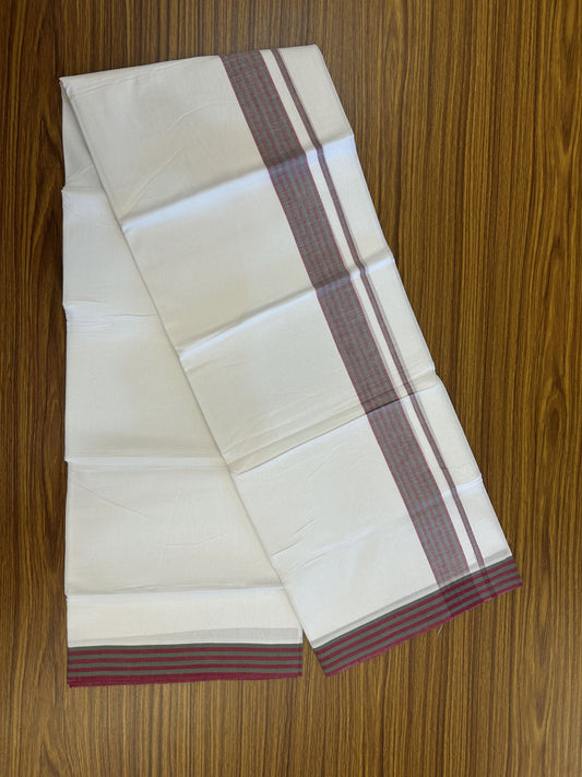 20% Discount ! Kaitharikada Balaramapuram 100% Cotton Pure White Double Mundu/Dothi - 100x80 - 1.5 inch Dusty Rose Stripes Design Kara 3.80 mtr (8 muzham) - 10 KK5319 THI