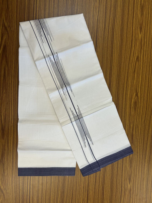 20% Discount ! Kaitharikada Balaramapuram 100% Cotton Pure White Double Mundu/Dothi - 100x80 - 1.5 inch Navy Blue Stripes Design Kara 3.80 mtr (8 muzham) - 18 KK5319 THI